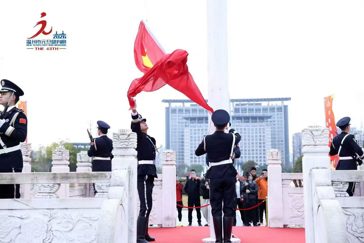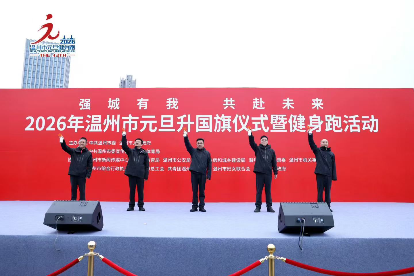 一元复始万象新。2026年1月1日清晨,温州市元旦升国旗仪式暨健身跑活动在市区世纪广场举行。来自市直属有关单位、企事业单位、大中专院校、金融机构、民营企业、社会团体等283支队伍的15000余名干部群众迎着晨光,踏着铿锵步伐,豪情满怀拥抱2026年。